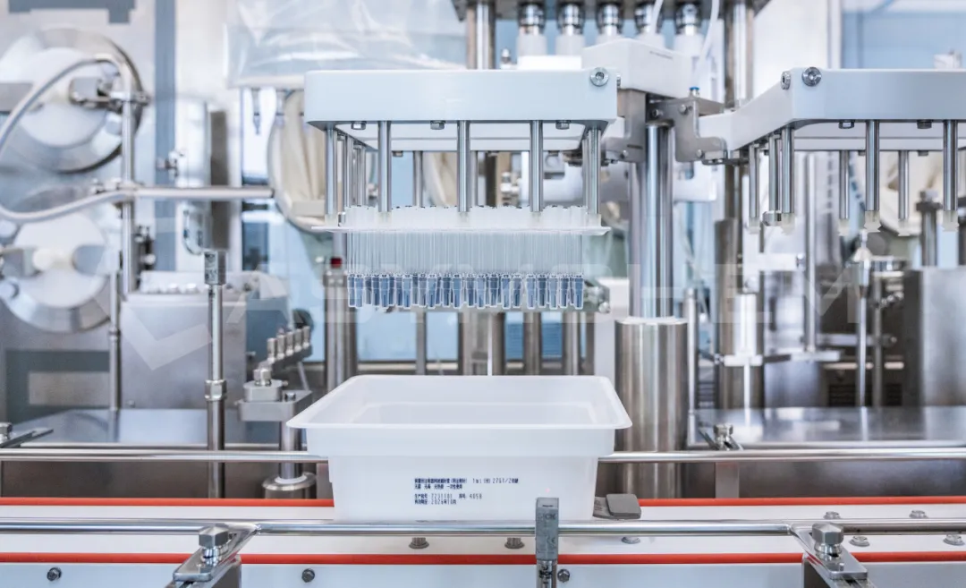 核心设备预充注射器灌装线选用国际一线品牌,实现从拆盒撕膜、脱巢、灌装到加塞的全流程自动化操作;全链条包装线联动设备可实现从灯检、贴标到泡罩包装的全程自动化无缝衔接,大幅提高生产效率及保证产品质量,为客户提供稳定、高质量的生产服务。