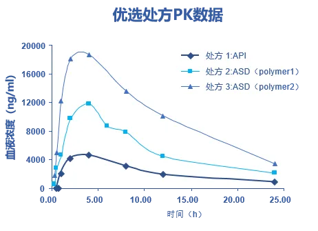 目前,团队已具备丰富的热熔挤出项目经验。针对具有多晶型且溶解度极低(BCS Ⅱ/Ⅳ类)、热稳定性良好的API,采用热熔挤出(HME)技术开发无定形固体分散体。在某制剂项目中,团队2周内完成聚合物筛选,实现无溶剂消耗与良好工艺重现性,最终ASD制剂显著提升API体内暴露量达5倍,提升效果显著。